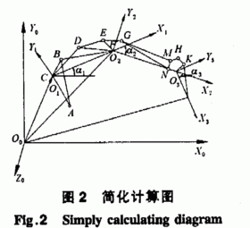 拋丸機(jī)卸料機(jī)構(gòu)工作時(shí),油缸的瞬時(shí)長(zhǎng)度可以求出,則可以求得a。,a:,a,,由姿態(tài)角和油缸長(zhǎng)度可以確定工作裝置的姿態(tài)(位置和姿態(tài))。