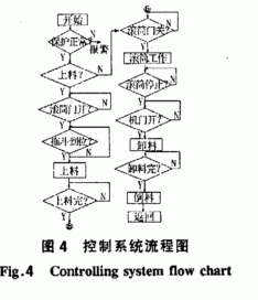 滾筒式拋丸機(jī)自動(dòng)裝卸系統(tǒng)控制系統(tǒng)采用可靠性很強(qiáng)的可控制編程器為核心,對(duì)整個(gè)系統(tǒng)進(jìn)行控制,可控制編程器的程序設(shè)計(jì)采用結(jié)構(gòu)簡(jiǎn)單、直觀、方便的梯形圖進(jìn)行,程序的設(shè)計(jì)方案,主要根據(jù)控制系統(tǒng)流程圖(見圖4)及控制系統(tǒng)主要功能實(shí)現(xiàn)的。