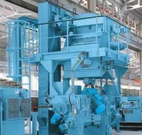 工件由輸送輥道送至封閉的拋丸清理室,利用拋丸器高速旋轉(zhuǎn)的葉輪將彈丸加速拋射至工件表面,對工件表面進行沖擊、刮削以清除工件表面的鐵銹和污物,然后利用橫掃、滾刷、收丸螺旋和高壓吹管將工件表面的積丸和浮塵吹掃干凈,由送出輥道送出,從而使鋼材達到除銹、防銹的目的。